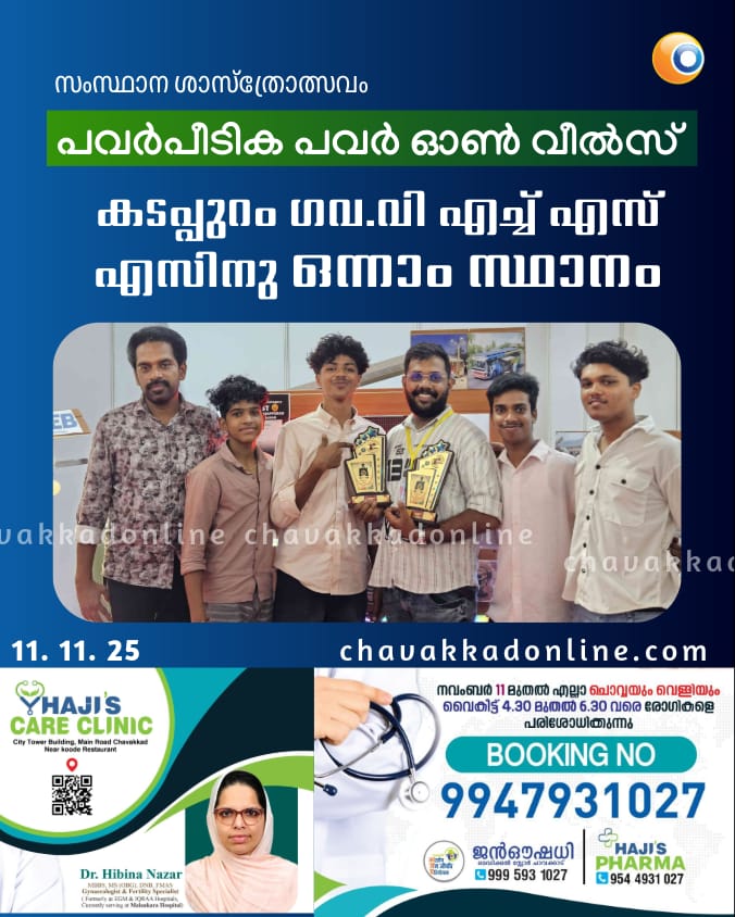 ചാവക്കാട് : സഞ്ചരിക്കുന്ന ചാർജിങ് സ്റ്റേഷന് വിഭാവനം നൽകിക്കൊണ്ട് സംസ്ഥാനശാസ്ത്രമേളയിൽ സ്കൂൾ സ്കിൽ ഫസ്റ്റ് വിഭാഗത്തിൽ ഇന്നവേഷൻ മത്സരത്തിൽ ഒന്നാം സ്ഥാനം നേടി കടപ്പുറം ഗവൺമെന്റ് വിഎച്ച്എസ് സ്കൂളിലെ രണ്ടാംവർഷ വിദ്യാർഥികൾ. കെഎസ്ഇബിയുടെ പുതിയ താരിഫ് പ്രകാരം പകൽ ഉൽപാദിപ്പിക്കുന്ന വൈദ്യുതി പ്രത്യേക ലിഥിയം ബാറ്ററി അടങ്ങിയ വാഹനങ്ങളിലേക്ക് നിറയ്ക്കുകയും വൈകുന്നേരങ്ങളിൽ സഞ്ചരിക്കുന്ന റസ്റ്റോറന്റ് എന്ന രീതിയിൽ ചായ കുടിക്കുവാൻ വരുന്ന വ്യക്തികൾക്ക് ഇലക്ട്രിക് വാഹനം ചാർജ് ചെയ്യാവുന്ന സംവിധാനമാണ് പവർപീടിക.