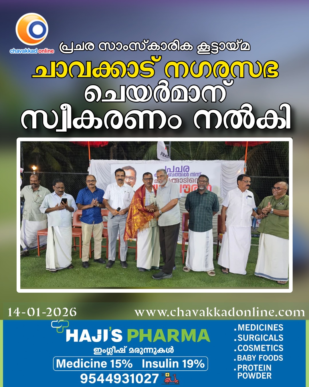 പ്രചര ചാവക്കാട് നഗരസഭ ചെയർമാന് സ്വീകരണം നൽകി