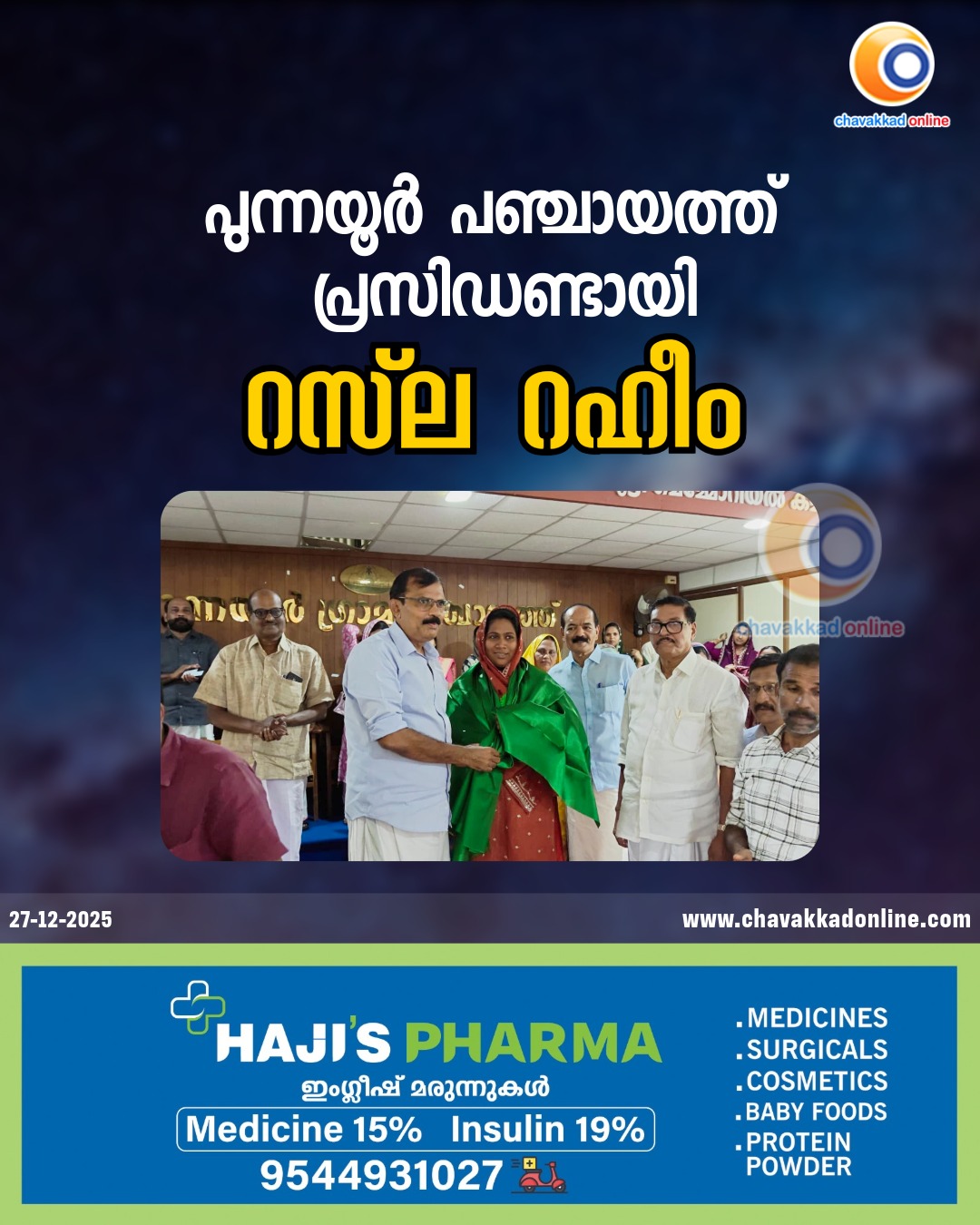 പുന്നയൂർ പഞ്ചായത്ത് പ്രസിഡണ്ടായി റസ്ല റഹീം