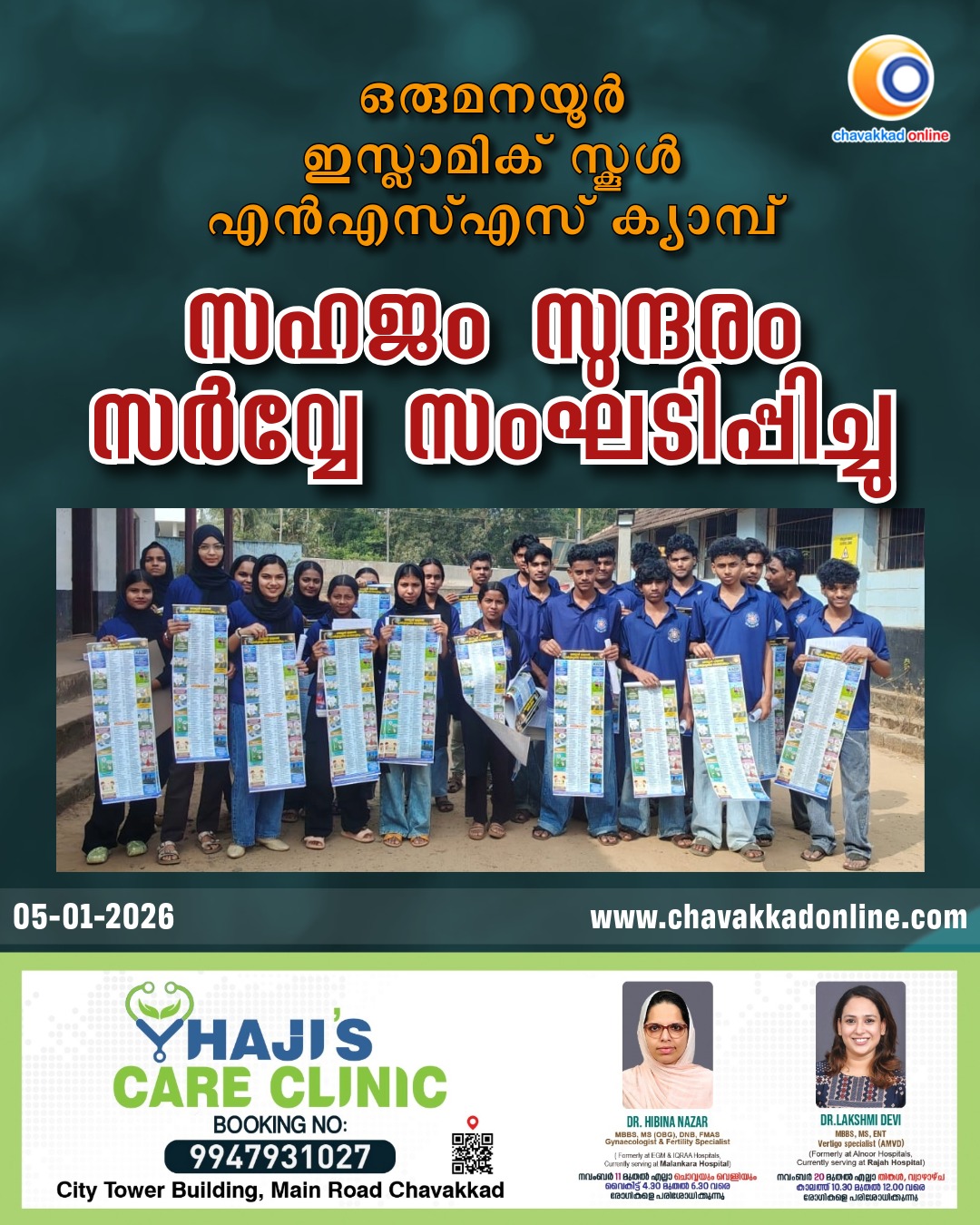 ഒരുമനയൂർ: ഒരുമനയൂർ ഇസ്ലാമിക്‌ വി എച് എസ് എസ്, എൻ എസ് എസ് സപ്ത ദിന ക്യാമ്പിന്റെ ഭാഗമായി നടത്തിയ സഹജം സുന്ദരം സർവ്വേ ശ്രദ്ദേയമായി. കൃതിമ സൗന്ദര്യ വസ്തുക്കളുടെ ഉപയോഗത്തിന്റെ ദൂഷ്യ ഫലങ്ങളെ കുറിച്ചാണ് സഹജം സുന്ദരം സർവ്വേ. സംസ്ഥാന ഡ്രഗ് കണ്ട്രോൾ വകുപ്പിന്റെ ഓപ്പറേഷൻ സൗന്ദര്യ പ്രൊജക്റ്റ്‌ ആയി സഹകരിച്ചായിരുന്നു സർവ്വേ. ഒരുമനയൂർ പഞ്ചായത്തിലെ 5,6,7 വാർഡുകളിലായിരുന്നു ബോധവൽക്കരണവും സർവ്വേയും നടത്തിയത്. സേഫ്റ്റി സ്പാർക് സർവ്വേ – വൈദ്യതി അപകട രഹിത കേരളം എന്ന പ്രൊജക്റ്റ്‌ കെ എസ് ഇ ബി യുമായി സഹകരിച്ചും സംഘടിപ്പിച്ചു. 100 വീടുകളിലാണ് സർവ്വേ നടത്തിയത്. പ്രോജെക്ടിന്റെ ദൂഷ്യ ഫലങ്ങളെ കുറിച്ച് 85% പേർക്കും അറിവുണ്ടെന്നാണ് സർവ്വേ കണ്ടെത്തിയത്. 41 വോളന്റീർസ് ആണ് സർവ്വേയിൽ പങ്കെടുത്തു. പി ടി എ പ്രസിഡന്റ്‌ നിഷാദ് മാളിയേക്കൽ, പ്രോഗ്രാം ഓഫീസർ പി എം തജ്‌രി, എന്നിവർ നേതൃത്വം നൽകി