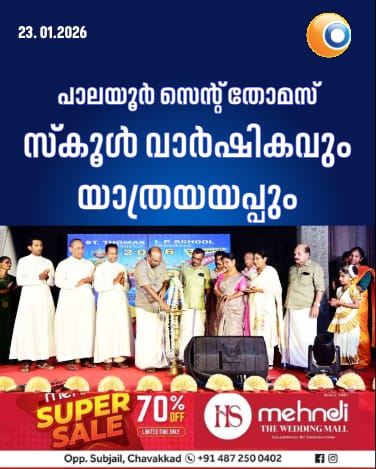 ചാവക്കാട് : സെൻ്റ് തോമസ് എൽ പി സ്കൂൾ വാർഷികാഘോഷവും പ്രധാനധ്യാപികയ്ക്ക് യാത്രയയപ്പ് സമ്മേളനവും നടത്തി. സ്കൂളിലെ പൂർവ വിദ്യാർഥിയായ എൻ.കെ. അക്ബർ എംഎൽഎ ഉദ്ഘാടനം ചെയ്തു. മാനേജർ ആർച്ച് പ്രീസ്റ്റ് റവ ഡോ. ഡേവീസ് കണ്ണമ്പുഴ അധ്യക്ഷത വഹിച്ചു. മുനിസിപ്പൽ ചെയർമാൻ എ. എച്ച്. അക്ബർ മുഖ്യാതിഥിയായി. റിട്ടയർ ചെയ്യുന്ന പ്രധാനധ്യാപിക ജ്യോതി ജോർജിൻ്റെ പടം കോർപ്പറേറ്റീവ് എജുക്കേഷൻ മാനേജർ ഫാ. ജോയ് അടമ്പുക്കുളം അനാഛാദനം ചെയ്തു. പി.വി. ഷെറിൻ റോസ് റിപ്പോർട്ട് അവതരിപ്പിച്ചു. ഫാ. ക്ലിൻ്റ് പാണേങ്ങാടൻ, ഷിബി ലാസർ, എ ഇ ഒ വി.ബി. സിന്ധു, ജോയ്സി ആൻ്റണി, സുരേഷ്, മാലിക്കുളം അബാസ്, ഫ്രാൻസീസ് ചിരിയങ്കണ്ടത്ത്, ഷീബ സുരേഷ്, എം.ടി. സംഗീത, പി.വി. ഷീബ, ഐറിൻ റോസ്, ജ്യോതി ജോർജ്പി, പി.ഡി. ജിതേഷ്, സി.എൽ. തോമസ്, സി.കെ. തോമസ് എന്നിവർ പ്രസംഗിച്ചു.