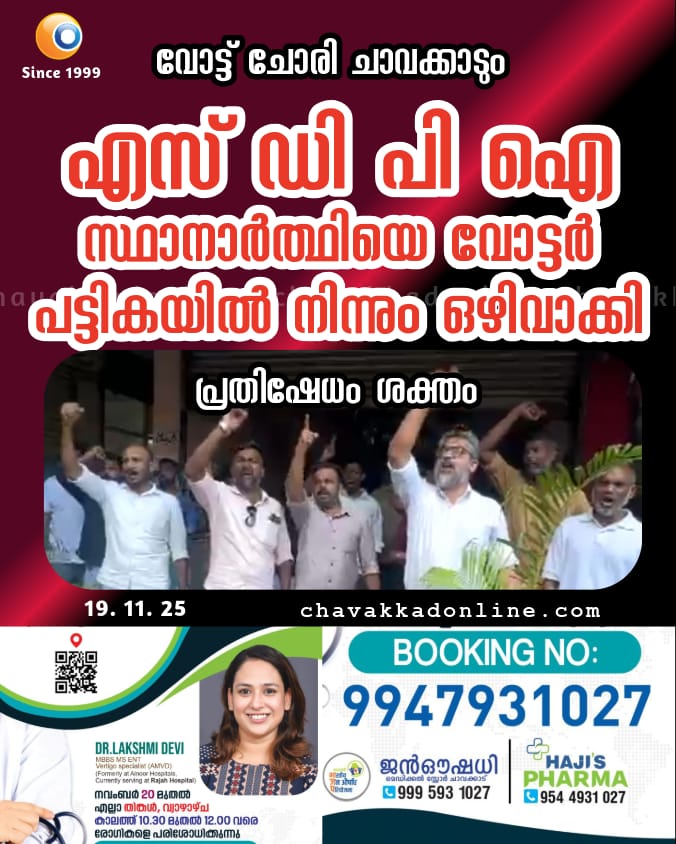 വോട്ടുചോരി ചാവക്കാട്ടും-എസ്ഡിപിഐ സ്ഥാനാർത്ഥി അലി നൈനാറിന്റെ വോട്ട് ഒഴിവാക്കിയതിനെതിരെ എസ്ഡിപിഐ പ്രതിഷേധം