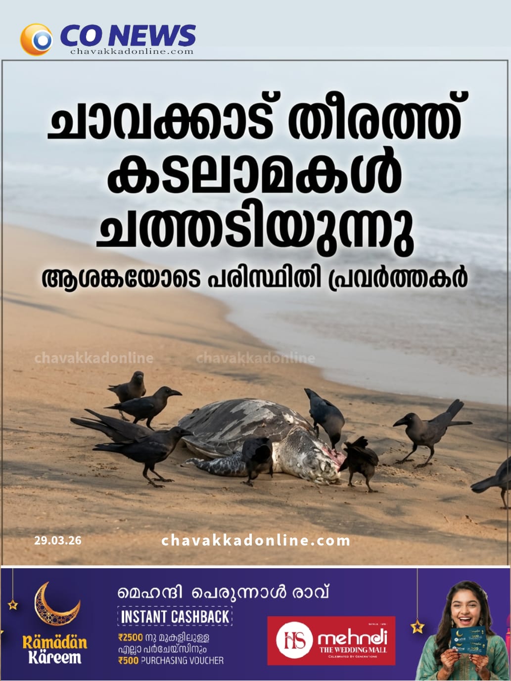 ​ഈ മാസത്തിനിടെ ചാവക്കാട് തീരത്ത് നിന്നും കണ്ടെത്തുന്ന രണ്ടാമത്തെയും, കഴിഞ്ഞ മൂന്ന് മാസത്തിനിടെ ലഭിക്കുന്ന അഞ്ചാമത്തെയും കടലാമയുടെ ജഡമാണിത്. കടലാമകളുടെ പ്രജനന കാലത്ത് ഇത്തരത്തിൽ കൂട്ടത്തോടെ ചത്തടിയുന്നത് കടലാമ സംരക്ഷകർക്കിടയിൽ വലിയ ആശങ്കയ്ക്ക് കാരണമായിട്ടുണ്ട്.