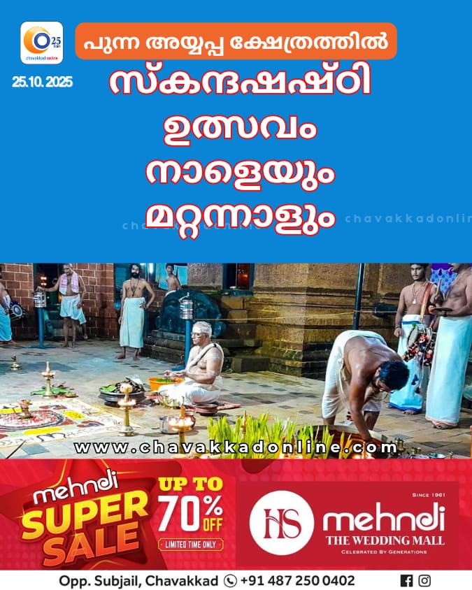 പുന്ന അയ്യപ്പ സുബ്രഹ്മണ്യക്ഷേത്രത്തില് സ്കന്ദഷഷ്ഠി ഉത്സവം നാളെയും മറ്റന്നാളും