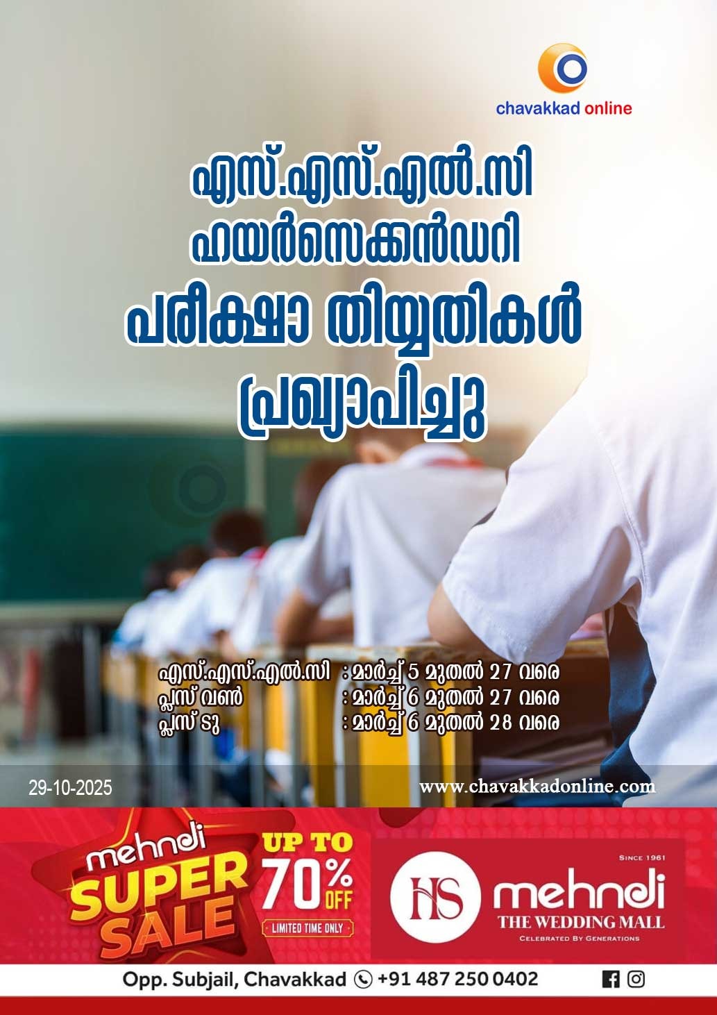 എസ് എസ് എൽ സി, ഹയർ സെക്കൻഡറി പരീക്ഷ തീയതികൾ പ്രഖ്യാപിച്ചു