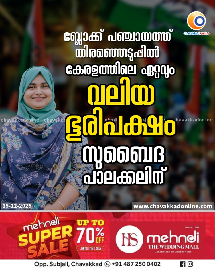 ബ്ലോക്ക് പഞ്ചായത്ത് തിരഞ്ഞെടുപ്പിൽ കേരളത്തിലെ ഏറ്റവും വലിയ ഭൂരിപക്ഷം സുബൈദ പാലക്കലിന്