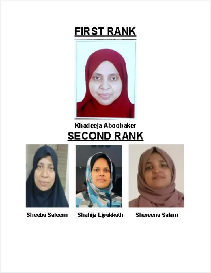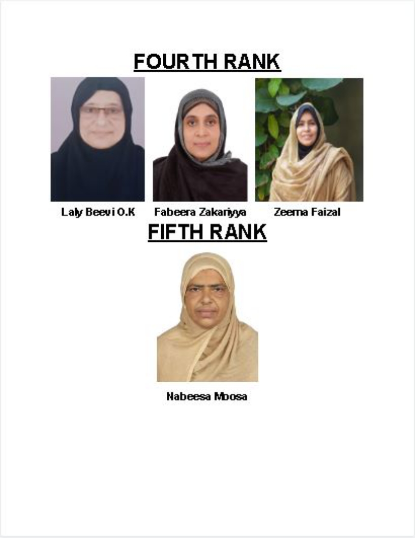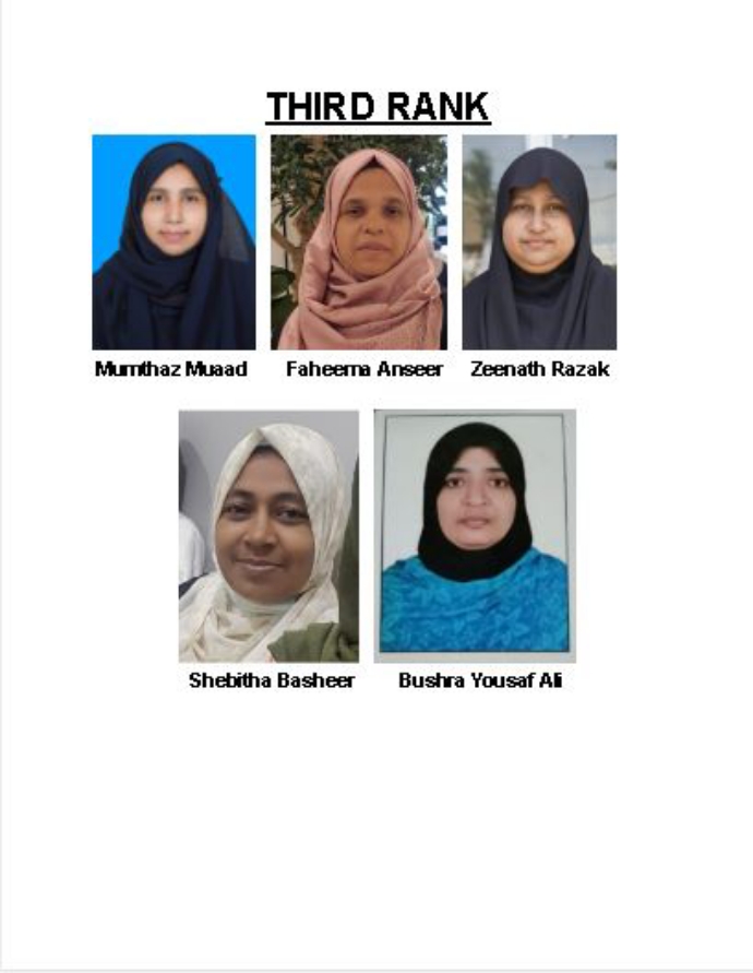 കദീജ അബൂബക്കർ, ഷീബ സലീം, ഷാഹിജ ലിയാക്കത്ത്, ഫഹീമ അൻസീർ,