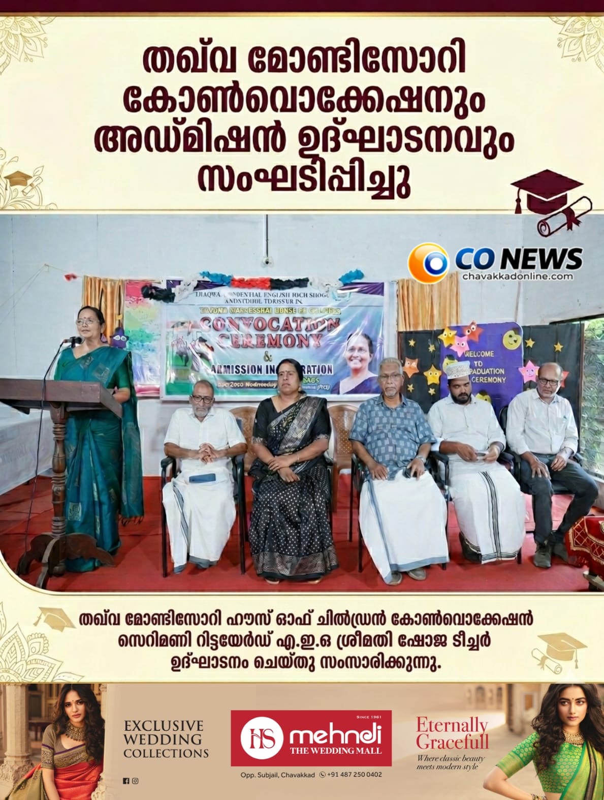 തഖ്‌വ മോണ്ടിസോറി കോൺവൊക്കേഷനും അഡ്മിഷൻ ഉദ്ഘാടനവും സംഘടിപ്പിച്ചു