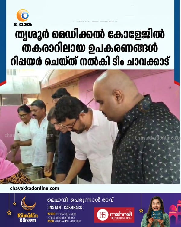 തൃശൂർ മെഡിക്കൽ കോളേജിൽ തകരാറിലായ ഉപകരണങ്ങൾ റിപ്പയർ ചെയ്ത് നൽകി ടീം ചാവക്കാട്