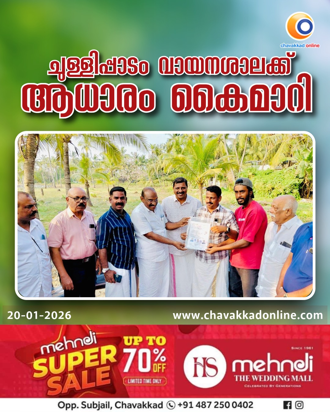 ചുള്ളിപ്പാടം വായനശാലക്ക് ആധാരം കൈമാറി