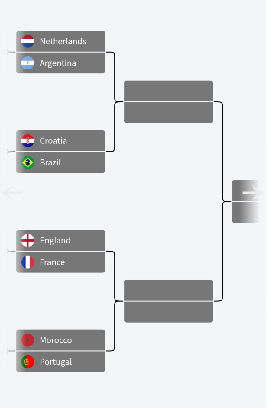ഡിസംബര് 10, ശനിയാഴ്ച 8.30 ന് നടക്കുന്ന മൂന്നാമത്തെ ക്വാര്ട്ടര് ഫൈനലില് പോര്ച്ചുഗല് മൊറോക്കോയുമായും ഇന്ത്യന് സമയം വെളുപ്പിന് 12.30 ന് നടക്കുന്ന നാലാമത്തെ ക്വാര്ട്ടര് ഫൈനലില് ഫ്രാന്സ് ഇംഗ്ലണ്ടുമായും ഏറ്റുമുട്ടും.