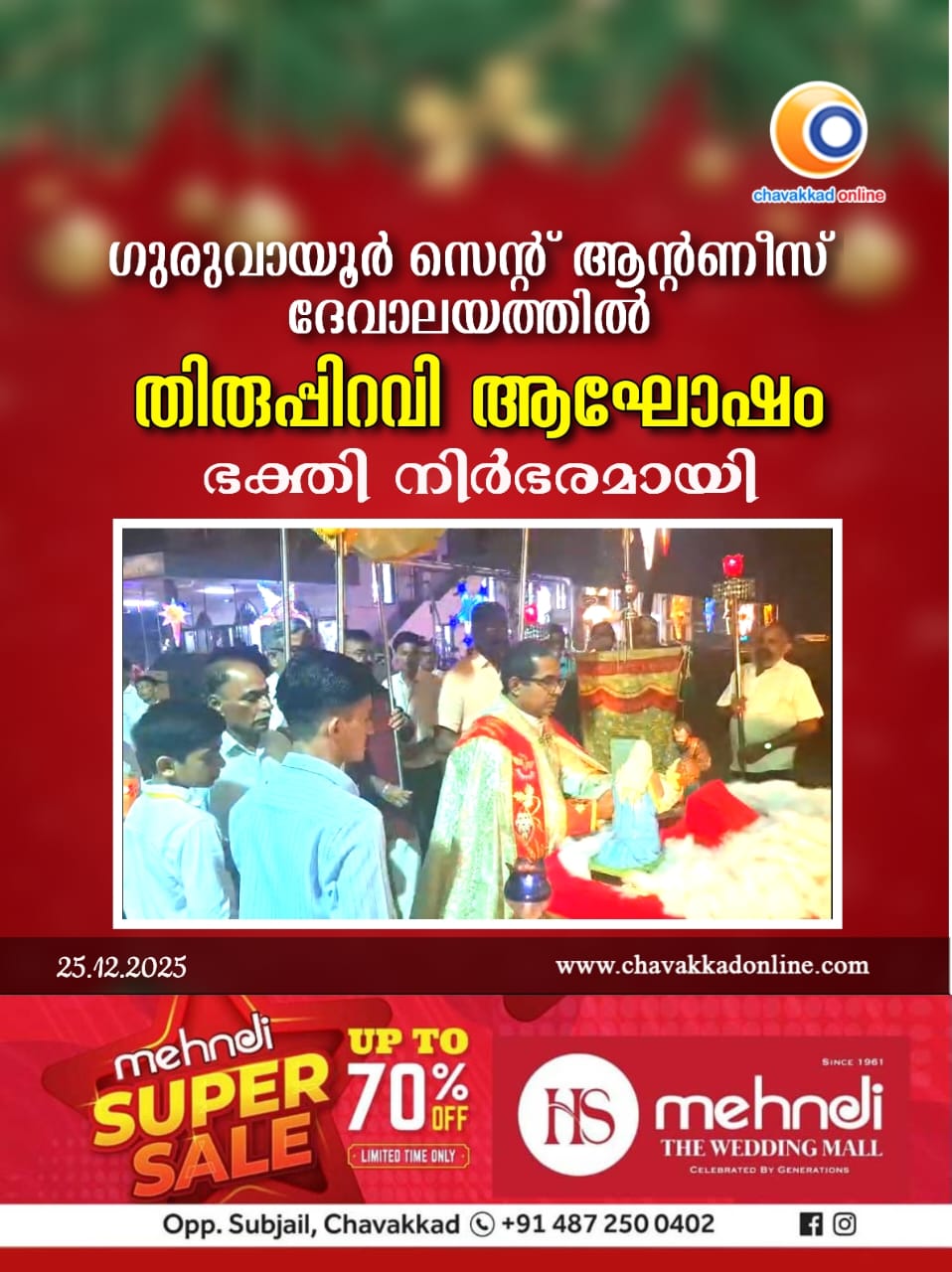 ഗുരുവായൂർ സെന്റ് ആന്റണീസ് ദേവാലയത്തിൽ തിരുപ്പിറവി ആഘോഷം ഭക്തിനിർഭരമായി