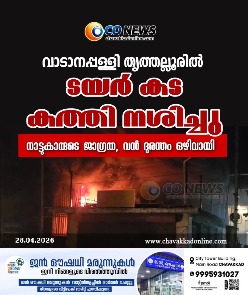 തൃത്തല്ലൂരിൽ ടയർ കട കത്തി നശിച്ചു – നാട്ടുകാരുടെ ജാഗ്രത വൻ ദുരന്തം ഒഴിവായി