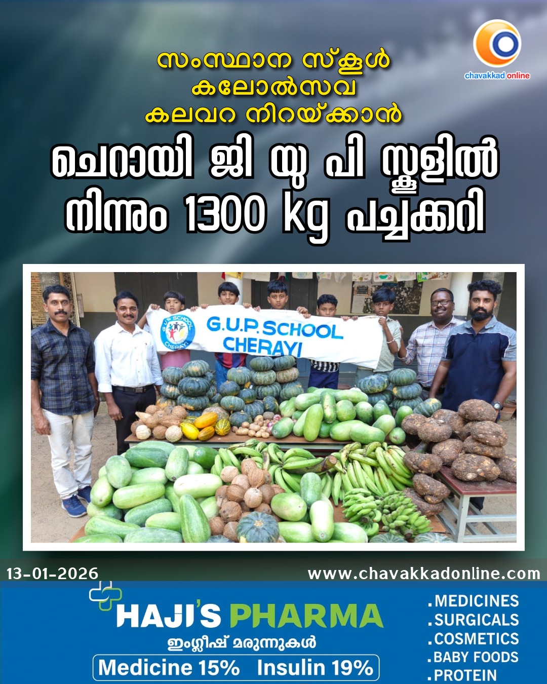 സംസ്ഥാന സ്കൂൾ കലോത്സവ കലവറ നിറയ്ക്കാൻ : ചെറായി ജി യു പി സ്കൂളിൽ നിന്നും 1300 kg പച്ചക്കറി