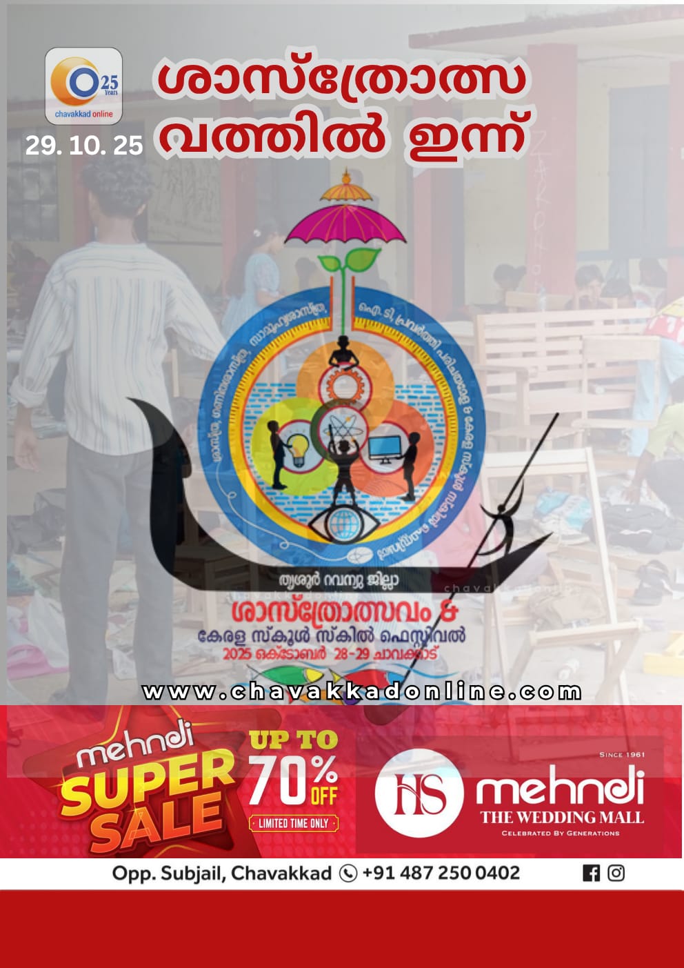 ചാവക്കാട് : എൽ എഫ് സി യു പി സ്കൂൾ മമ്മിയൂരിൽ സ്റ്റിൽ മോഡൽ, വർക്കിംഗ് മോഡൽ മത്സരങ്ങളാണ് നടക്കുക. എൽ എഫ് സി ജി എച്ച് എസിൽ എച്ച്എസ്എസ്/വിഎച്ച്എസ്എസ് വിഭാഗത്തിൻറെ ഗണിത തൽസമയ മത്സരങ്ങളും, രാമാനുജൻ സെമിനാറും നടക്കും. ശാസ്ത്രമേള വേദിയായ എം ആർ ആർ എം എച്ച്എസ്എസ് ചാവക്കാട് സ്കൂളിൽ ഹയർ സെക്കൻഡറി/ വിഎച്ച്എസ്എസ് വിഭാഗത്തിന്റെ ശാസ്ത്ര മത്സരങ്ങളും നടക്കും. പ്രവർത്തി പഠന മേള വേദിയായ ശ്രീകൃഷ്ണ എച്ച്എസ്എസിൽ ഡോൾ മേക്കിങ്, ക്വയർ ഡോർ മാറ്റ്സ്, വുഡ് കാർവിങ് തുടങ്ങിയ മത്സരങ്ങളും നടക്കും. ആറായിരത്തോളം വിദ്യാർത്ഥികളാണ് രണ്ടു ദിവസമായി സ്കൂൾ ശാസ്ത്രമേളയിൽ പങ്കെടുക്കുന്നത്.