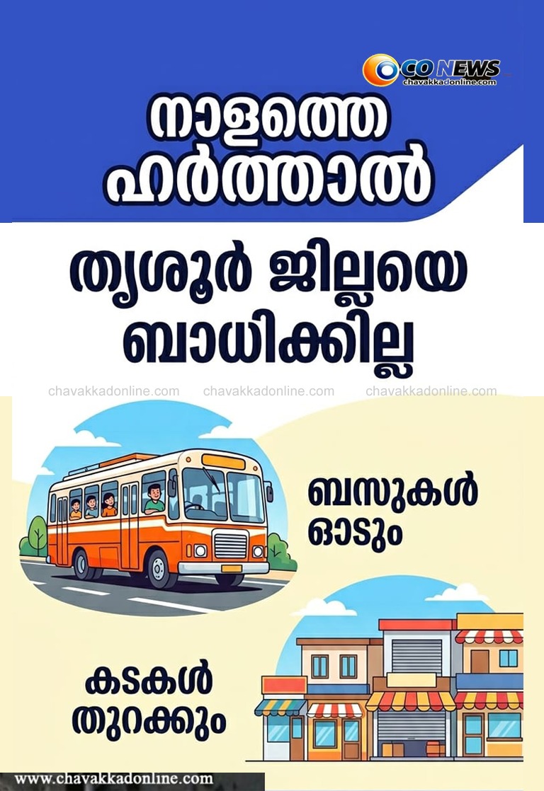 നാളത്തെ ഹർത്താൽ; തൃശൂർ ജില്ലയെ ബാധിക്കില്ല – ബസുകൾ ഓടും, കടകൾ തുറക്കും