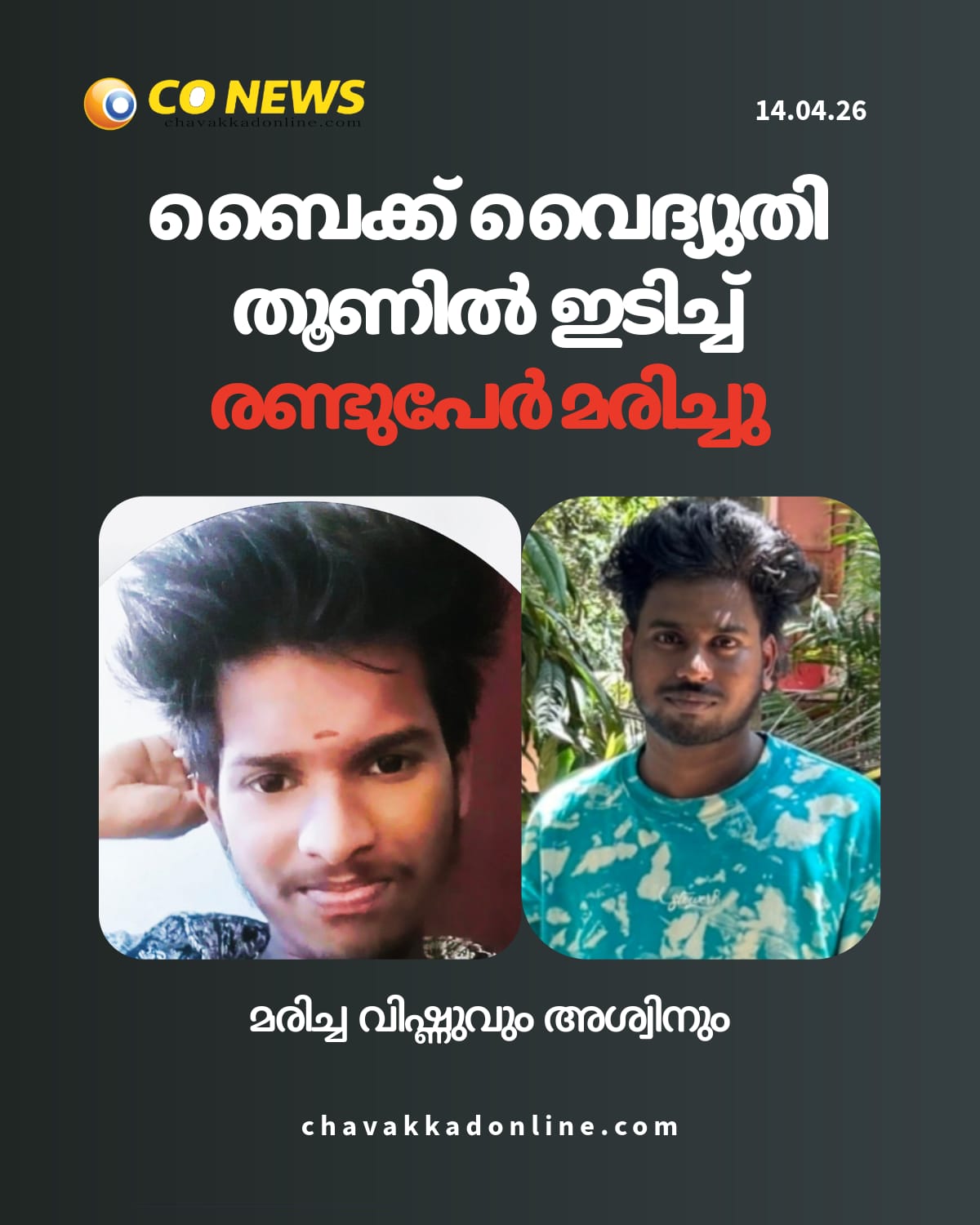 ബൈക്ക് വൈദ്യുതി തൂണിൽ ഇടിച്ച് രണ്ടുപേർ മരിച്ചു