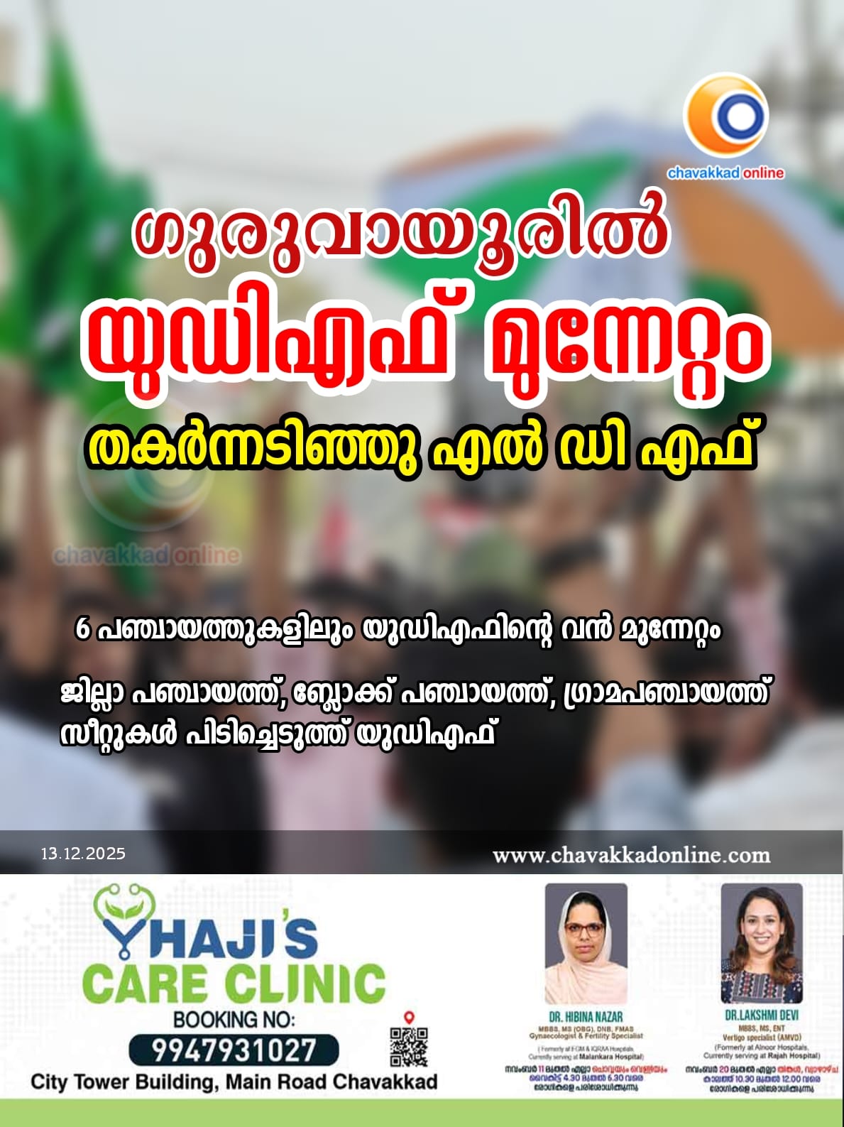 ഗുരുവായൂരിൽ യു ഡി എഫ് മുന്നേറ്റം – തകർന്നടിഞ്ഞു എൽ ഡി എഫ്