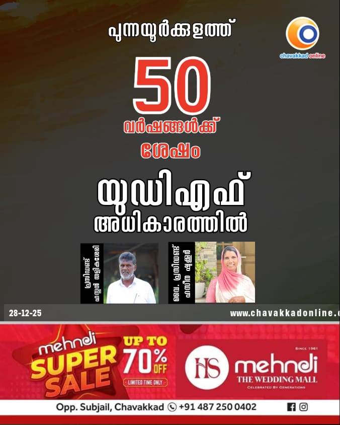 പുന്നയൂർക്കുളത്ത് 50 വർഷങ്ങൾക്കുശേഷം യുഡിഎഫ് അധികാരത്തിൽ