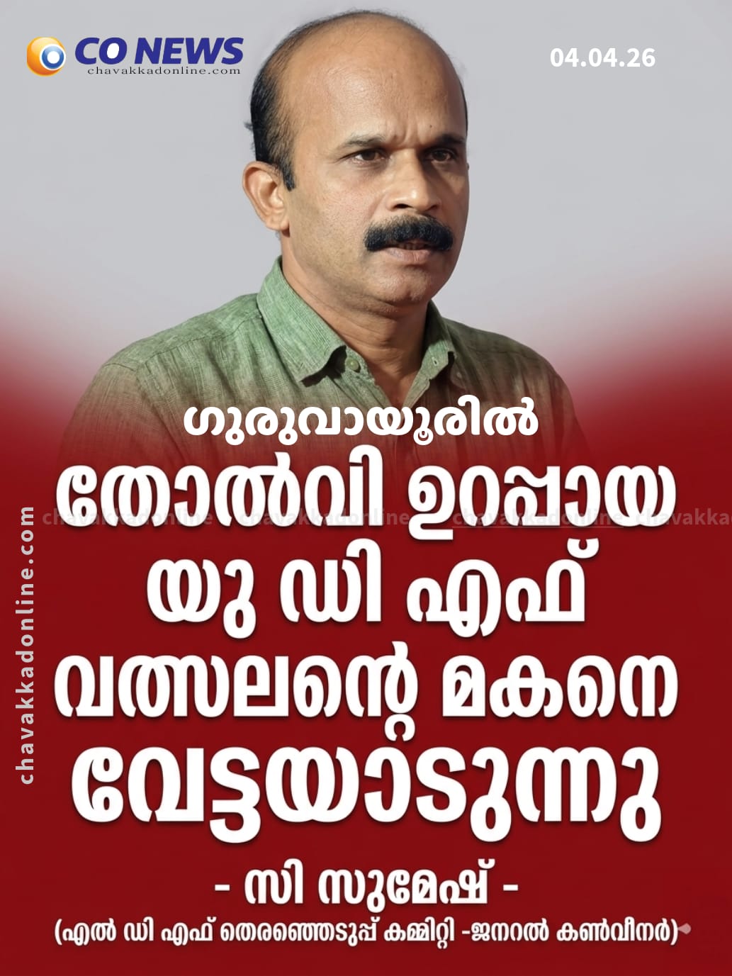 ഗുരുവായൂരിലെ ജനാധിപത്യവിശ്വാസികൾ ഇത് തിരിച്ചറിയണമെന്നും കെ പി വത്സലനെയും എസി ഹനീഫയേയും കൊന്നു തള്ളിയവരെ ജനം ചവറ്റുക്കൊട്ടയിലെറിയണമെന്നും എൽ ഡി എഫ് തെരഞ്ഞെടുപ്പ് കമ്മിറ്റി ജനറൽ കൺവീനർ സി സുമേഷ് പറഞ്ഞു.