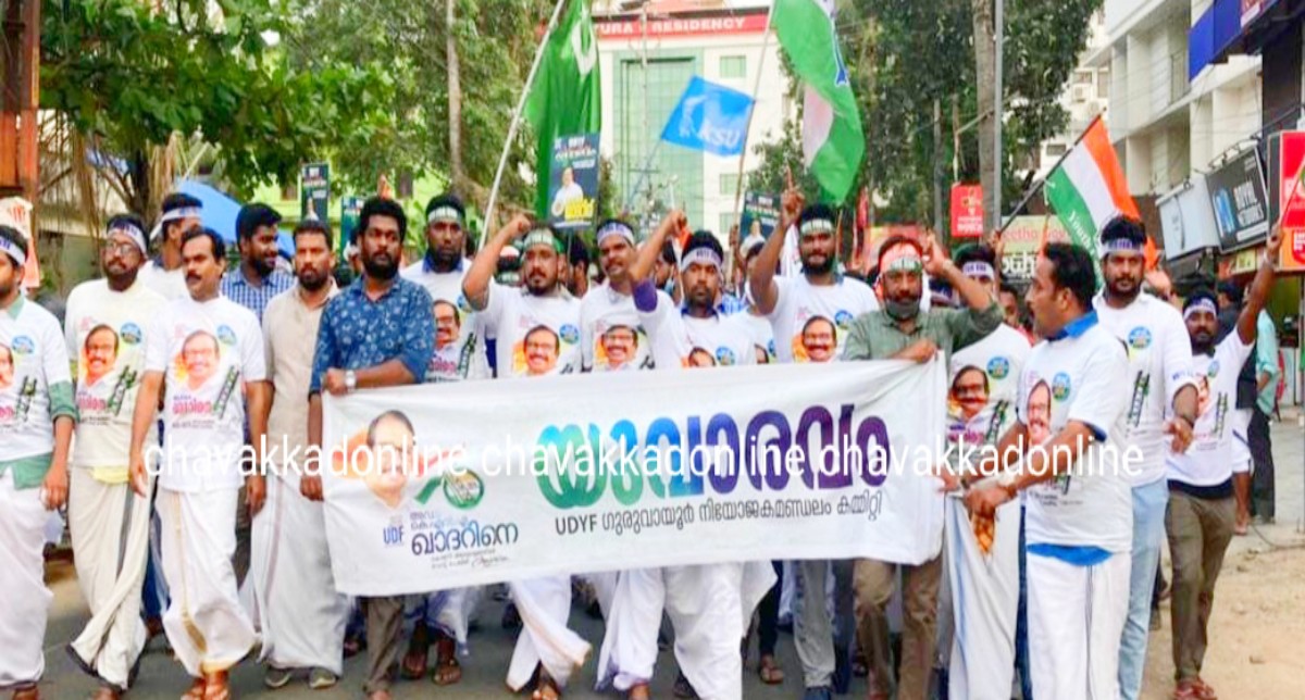 ഗുരുവായൂർ ടൌൺ ഹാൾ പരിസരത്തു നിന്ന് തുടങ്ങിയ യുവജന റോഡ് ഷോ ചാവക്കാട് സെന്ററിൽ സമാപിച്ചു. യുവാരവത്തിനു കെ പി സി സി ജനറൽ സെക്രട്ടറി ഒ അബ്ദുറഹ്മാൻ കുട്ടി ഫ്ലാഗ് ഓഫ് ചെയ്തു.