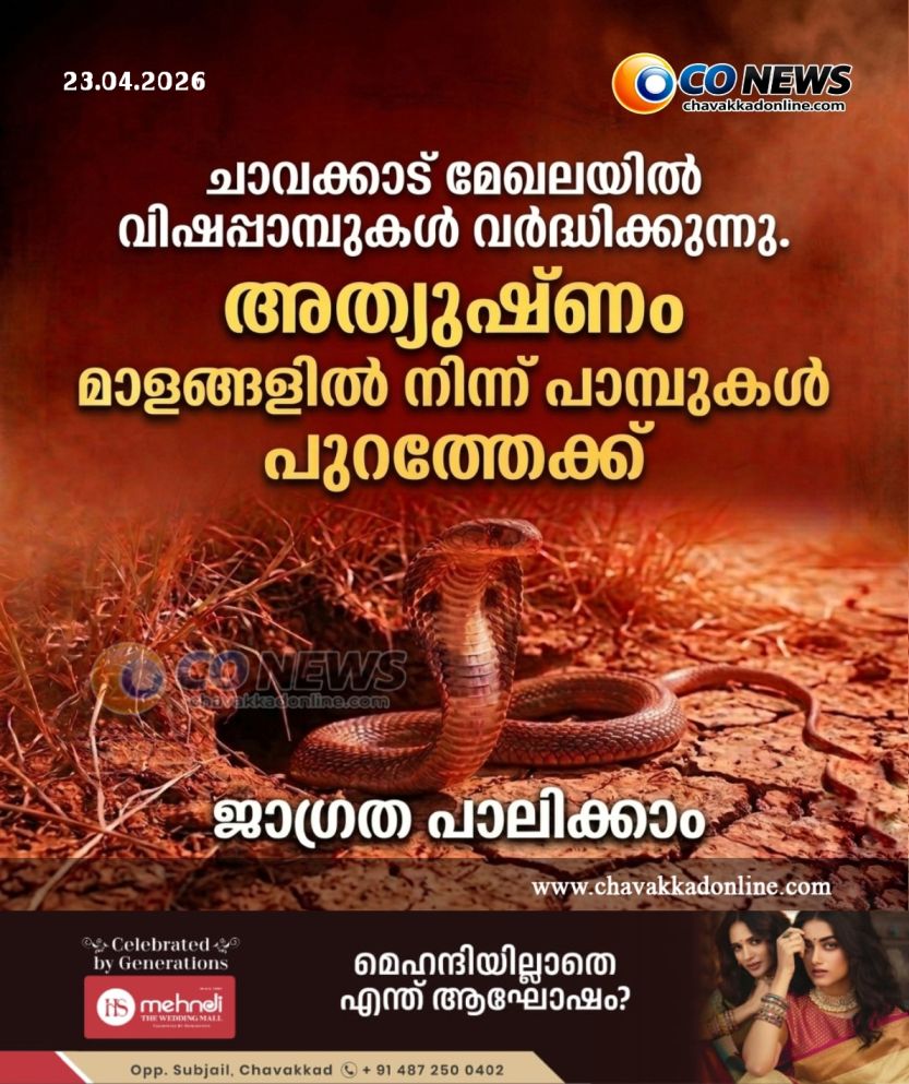 ചാവക്കാട് മേഖലയിൽ വിഷപ്പാമ്പുകൾ വർദ്ധിക്കുന്നു – അത്യുഷ്ണം, മാളങ്ങളിൽ നിന്ന് പാമ്പുകൾ പുറത്തേക്ക് : ജാഗ്രത പാലിക്കാം
