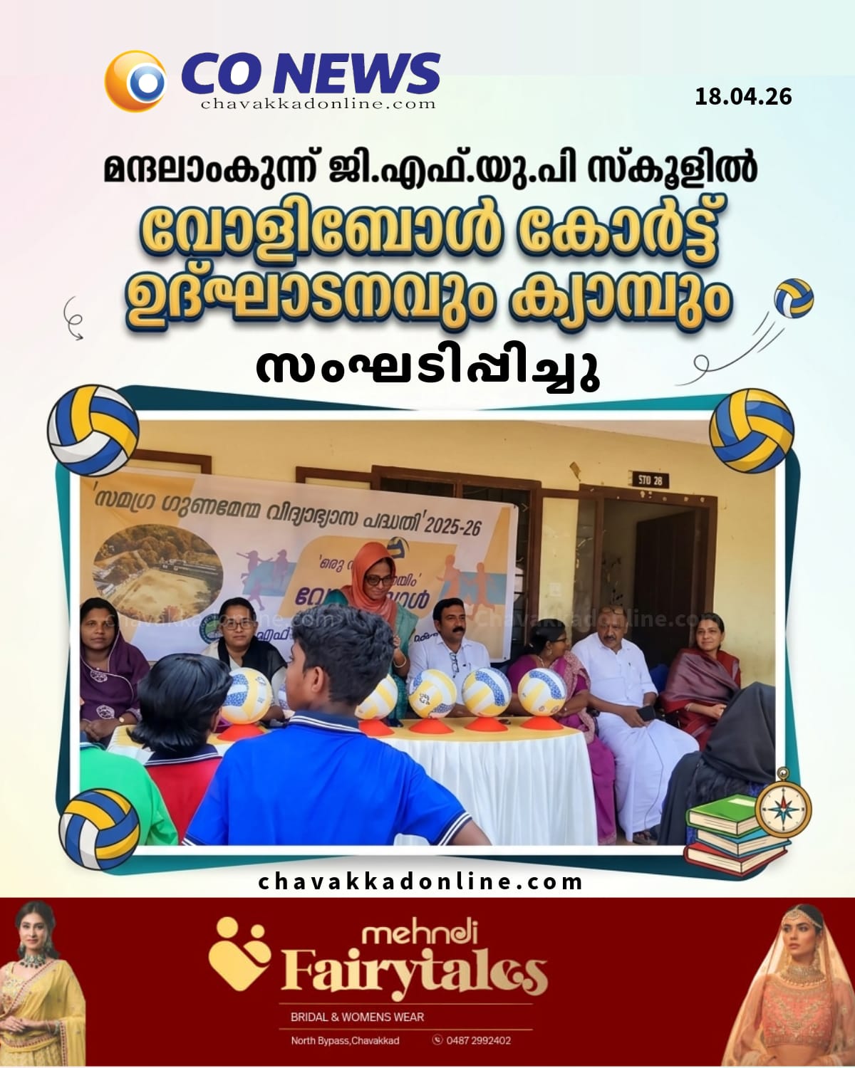 പുന്നയൂർ: മന്ദലാംകുന്ന് ജി.എഫ്.യു.പി സ്കൂളിലെ വോളിബോൾ കോർട്ടിന്റെയും ക്യാമ്പിന്റെയും ഉദ്ഘാടനം വാർഡ് മെമ്പർ ടി എ അയിഷ നിർവഹിച്ചു. പി.ടി.എ പ്രസിഡന്റ് അസീസ് മന്ദലാംകുന്ന് അധ്യക്ഷത വഹിച്ചു. ചാവക്കാട് എ.ഇ.ഒ വി.ബി സിന്ധു മുഖ്യ അതിഥിയായി. വിദ്യാഭ്യാസ വകുപ്പിന്റെ നേതൃത്വത്തിൽ “സമഗ്ര ഗുണമേന്മ വിദ്യാഭ്യാസ പദ്ധതി”യുടെ ഭാഗമായി “ഒരു സ്കൂൾ ഒരു ഗെയിം” പദ്ധതിയിൽ ഉൾപ്പെടുത്തിയാണ് വോളിബോൾ കോർട്ട് അനുവദിച്ചു കിട്ടിയത്. ഒരു സ്കൂളിൽ ഒരു കായിക ഇനം പരിശീലിപ്പിക്കുന്നതിന് വേണ്ടി സാമ്പത്തിക സഹായം അനുവദിക്കുന്നതാണ് പദ്ധതി. ജില്ലയിൽ രണ്ട് സ്കൂളുകൾക്കാണ് പ്രസ്തുത പദ്ധതി ലഭിച്ചിട്ടുള്ളത്. ഉദ്ഘാടനത്തോടനുബന്ധിച്ച് നടക്കുന്ന വോളിബോൾ ക്യാമ്പിന് സ്കൂൾ ഫിസിക്കൽ എജുക്കേഷൻ ട്രെയിനർ റഫീൽ നേതൃത്വം നൽകി. ഒ.എസ്.എ പ്രസിഡന്റ് കെ.കെ ഷുക്കൂർ, സി.ആർ.സി കോഡിനേറ്റർ ജ്യോത്സന, എസ്.എം.സി ചെയർപേഴ്സൺ റസിയ ഫിറോസ്, എം.പി.ടി.എ പ്രസിഡന്റ് ഷാമില റൗഫ്, എസ്.എം.സി വൈസ് ചെയർമാൻ വി.എച്ച് റബിയത്ത്, കെ.എ നവാസ്, എൻ ബി നവാസ്, നുസ്റത്ത്, ബൽക്കീസ്, അധ്യാപകരായ ബിന്ദു, സിൻസി, ഷബരീഷ്, ഹരീഷ്, സുബിൻ എന്നിവർ സംസാരിച്ചു. പ്രധാന അധ്യാപിക സുനിത മേപ്പുറത്ത് സ്വാഗതവും സിനാൻ മാസ്റ്റർ നന്ദിയും പറഞ്ഞു.