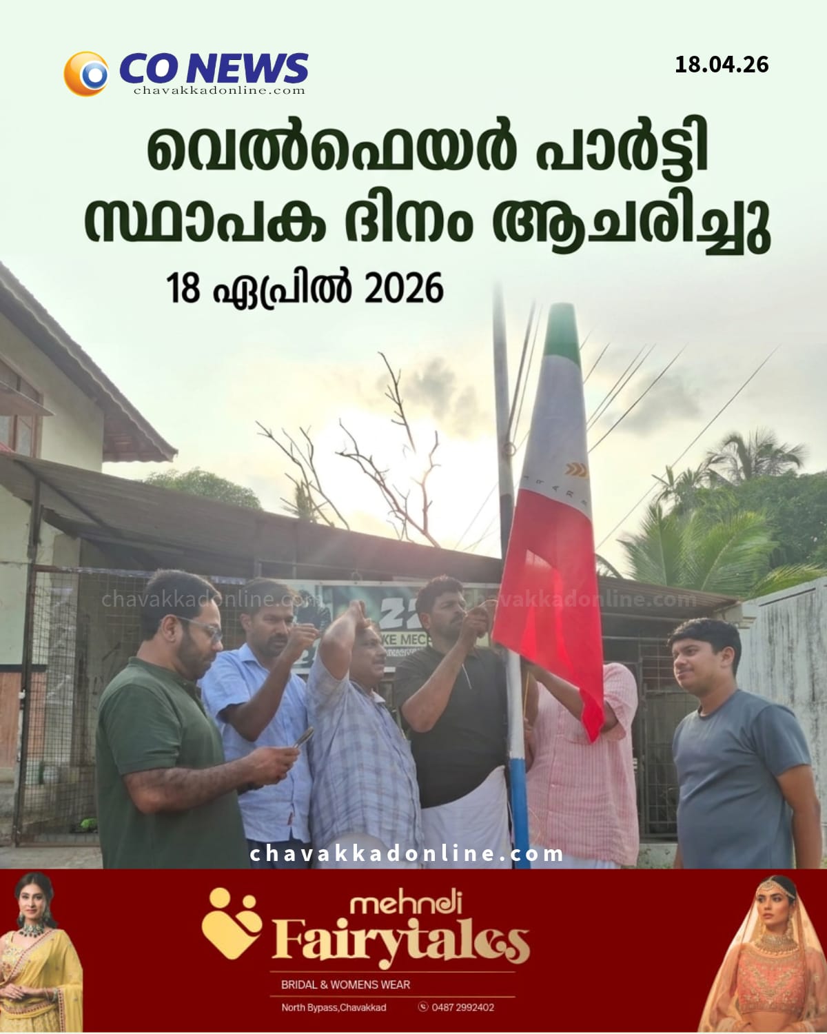 പുന്നയൂർകുളം: വെൽഫെയർ പാർട്ടി ഏപ്രിൽ 18 ന് പതിനഞ്ചാം സ്ഥാപക ദിനം ആഘോഷിച്ചു. യൂണിറ്റ് പ്രസിഡണ്ട്ന്മാരായ ലത്തീഫ് കോലയിൽ, ഹുസൈൻ അണ്ടത്തോട്, ഉമ്മർ കടിക്കാട് എന്നിവർ വിവിധ യൂണിറ്റുകളിൽ പതാക ഉയർത്തി. അൽജാബിർ, അബൂബക്കർ കാണക്കോട്, ഹൈദരാലി എന്നിവർ പ്രതിജ്ഞ ചൊല്ലിക്കൊടുത്തു.