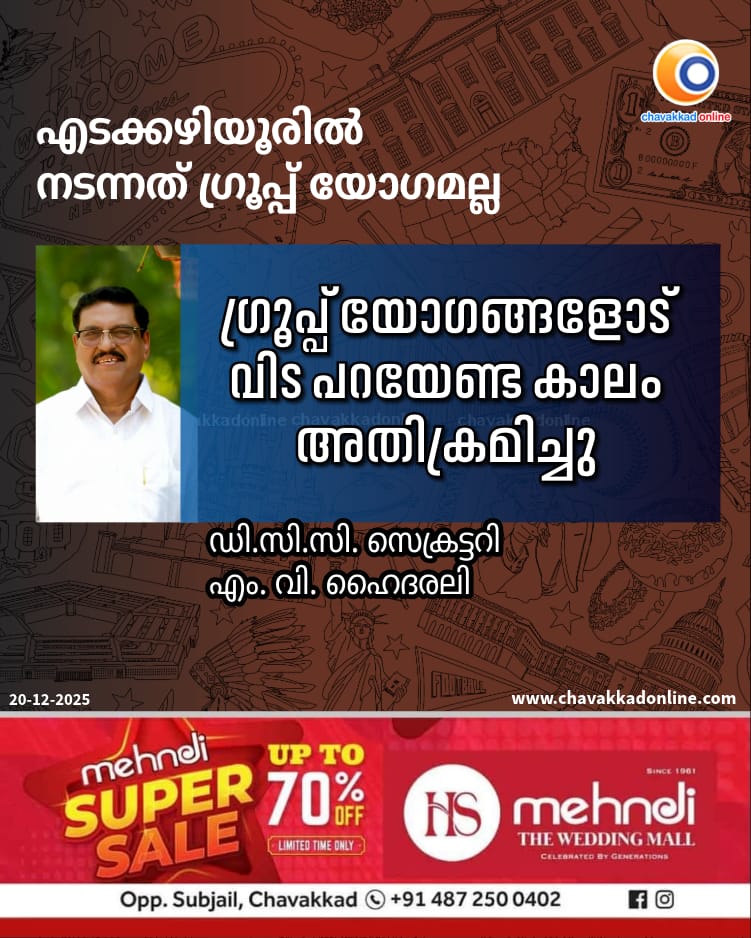 എടക്കഴിയൂരിൽ നടന്നത് ഗ്രൂപ്പ് യോഗമല്ല ഗ്രൂപ്പ് യോഗങ്ങളോട് വിട പറയേണ്ട കാലം അതിക്രമിച്ചു – ഡി. സി. സി. സെക്രട്ടറി എം. വി. ഹൈദരലി