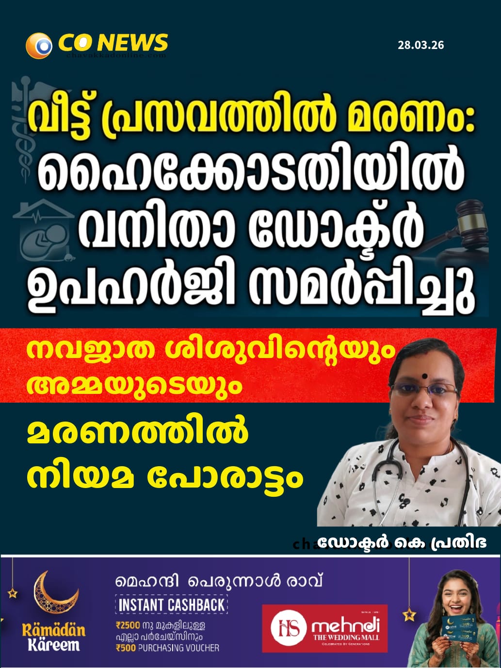 വീട്ട് പ്രസവത്തിൽ നവജാത ശിശുവും അമ്മയും മരിച്ച സംഭവം ഹൈക്കോടതിയിൽ ഉപഹർജി സമർപ്പിച്ച് വനിതാ ഡോക്ടർ